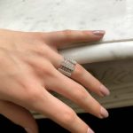 Bague XL Pavée Diamant – Collection Bambou La ligne Bambou, c’est l’élégance rythmée par l’essentiel. Un trait pur, un rythme fort. La Bague XL Diamant souligne cette lecture par la splendide luminosité des 42 Diamants qui recouvrent ses 3 baguettes d’or. Motif composé de 3 longues baguettes pavées de 48 Diamants naturels FSI A l’arrière du doigt, un demi-corps rigide vient tenir les chaînes et facilite grandement le passage de la bague à votre doigt Chaîne, baguettes et demi-corps en or 18K (750‰) déclinés en Or Blanc, Jaune et Rose Tailles de Ø48 à Ø60 (voir le Guide d’Achat plus bas) Bague fabriquée dans nos ateliers français Bague disponible sous 24h à 72h maximum (jours ouvrés) selon stock Cette bague peut être réalisée pour un autre tour de doigt ou une autre qualité de diamant. Contactez la boutique LAYONE pour toute demande spécifique : 01 42 36 05 18.