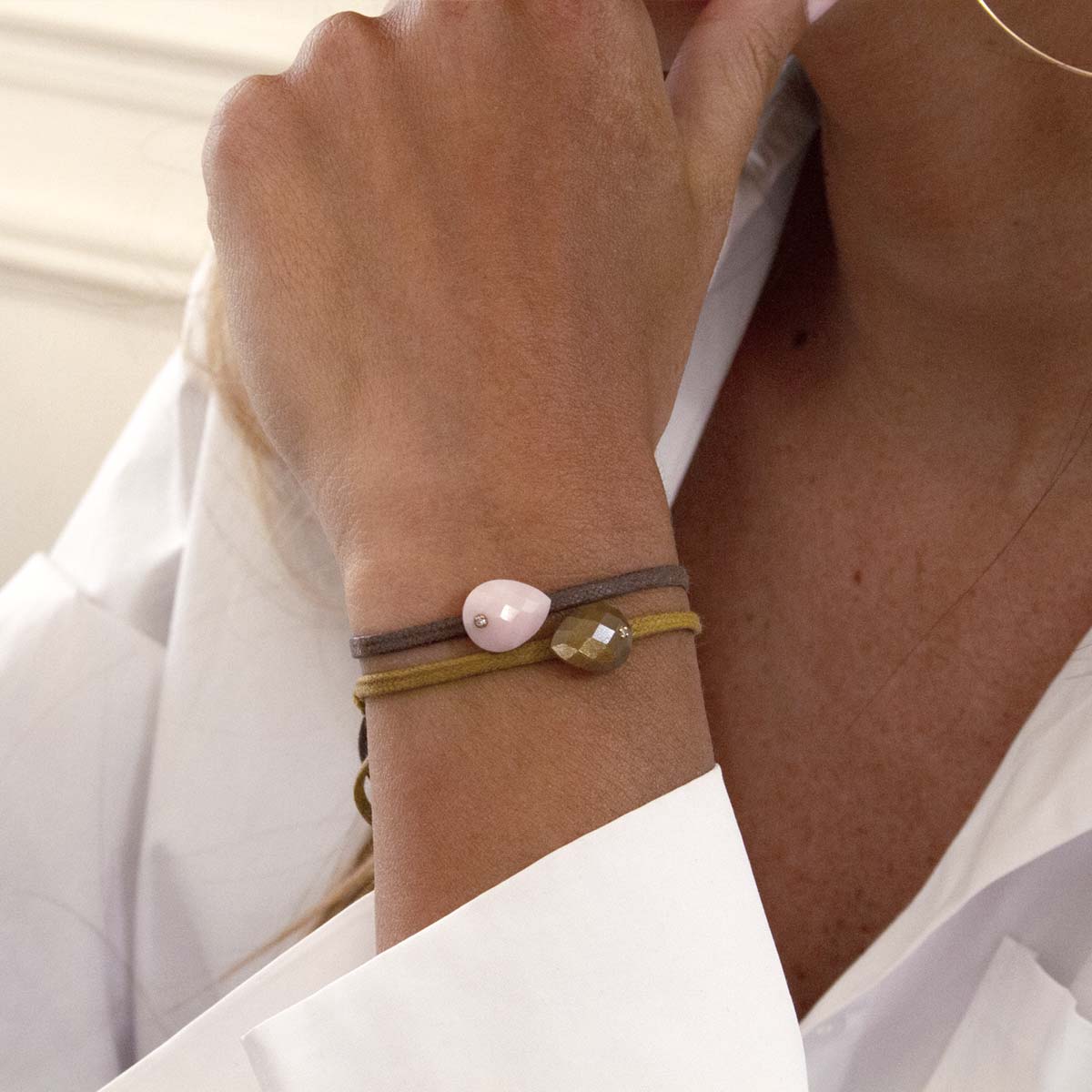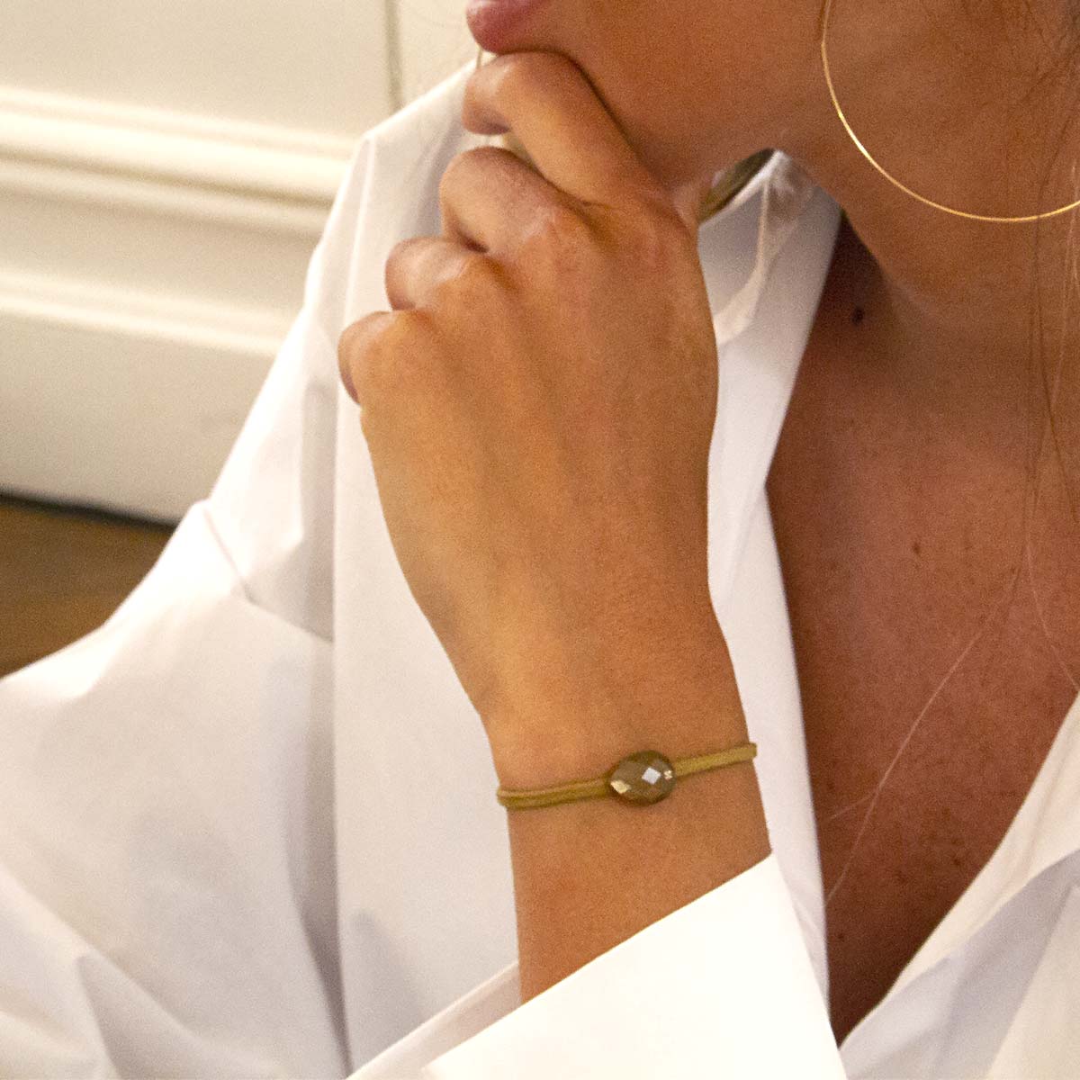 Bracelet Cordon Envoûtante 1 Diamant Collection : Envoûtante Pierres Fines Naturelles non résinées : disponible en 18 couleurs de pierres (Agate, Amazonite, Calcédoine, Cornaline, Labradorite, Lapis Lazuli, Oeil de Tigre, Onyx, Pierre de Lune, Quartz). Taille de la Pierre : Poire facettée de 5 Carats* La pierre est serti d’un Diamants naturels FSI Cordons : disponible en 14 couleurs de cordon (Bleu Pétrole, Camel, Chocolat, Ébène, Fuschia, Gris souris, Kaki, Moka, Orange, Prune, Rose Foncé, Rose poudré, Turquoise, Vert Emeraude) Plaquette : Argent 925 ‰, poinçon d’origine garantie Fabrication Française Disponibilité : expédié sous 24h à 72h (jours ouvrés) si disponible en stock, sous 30 jours maximum dans le cas contraire * Le poids des pierres est une valeur indicative basée sur la moyenne des pierres montées sur ce modèle de bijou. Bracelet Cordon – Bracelet Pierre Semi-Précieuse – Bracelet Pierre Fine – Bracelet Pierre Naturelle – Bracelet Femme – Bracelet Cordon Femme – Bracelet LAYONE