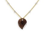 Collier Pierre Fine – 11 Diamants Collection : Envoûtante Pierres Fines Naturelles non résinées : disponible en 18 couleurs de pierres (Agate, Amazonite, Calcédoine, Cornaline, Labradorite, Lapis Lazuli, Oeil de Tigre, Onyx, Pierre de Lune, Quartz). Poire : 5 Carats* Diamants : 11 Diamants de Qualité FSI Chaïne : Or 18K, 750‰ Longueur : réglable à 42cm, 44 cm, 46 cm Fabrication Française Disponibilité : expédié sous 24h à 72h maximum (jours ouvrés) si disponible en stock, sous 30 jours maximum dans le cas contraire * Le poids des pierres est une valeur indicative basée sur la moyenne des pierres montées sur ce modèle de bijou. Collier Pierre Semi-Précieuse – Collier Or et Diamant – Collier Pierre Fine – Collier Femme – Collier Diamant – Collier Pierre et Diamant